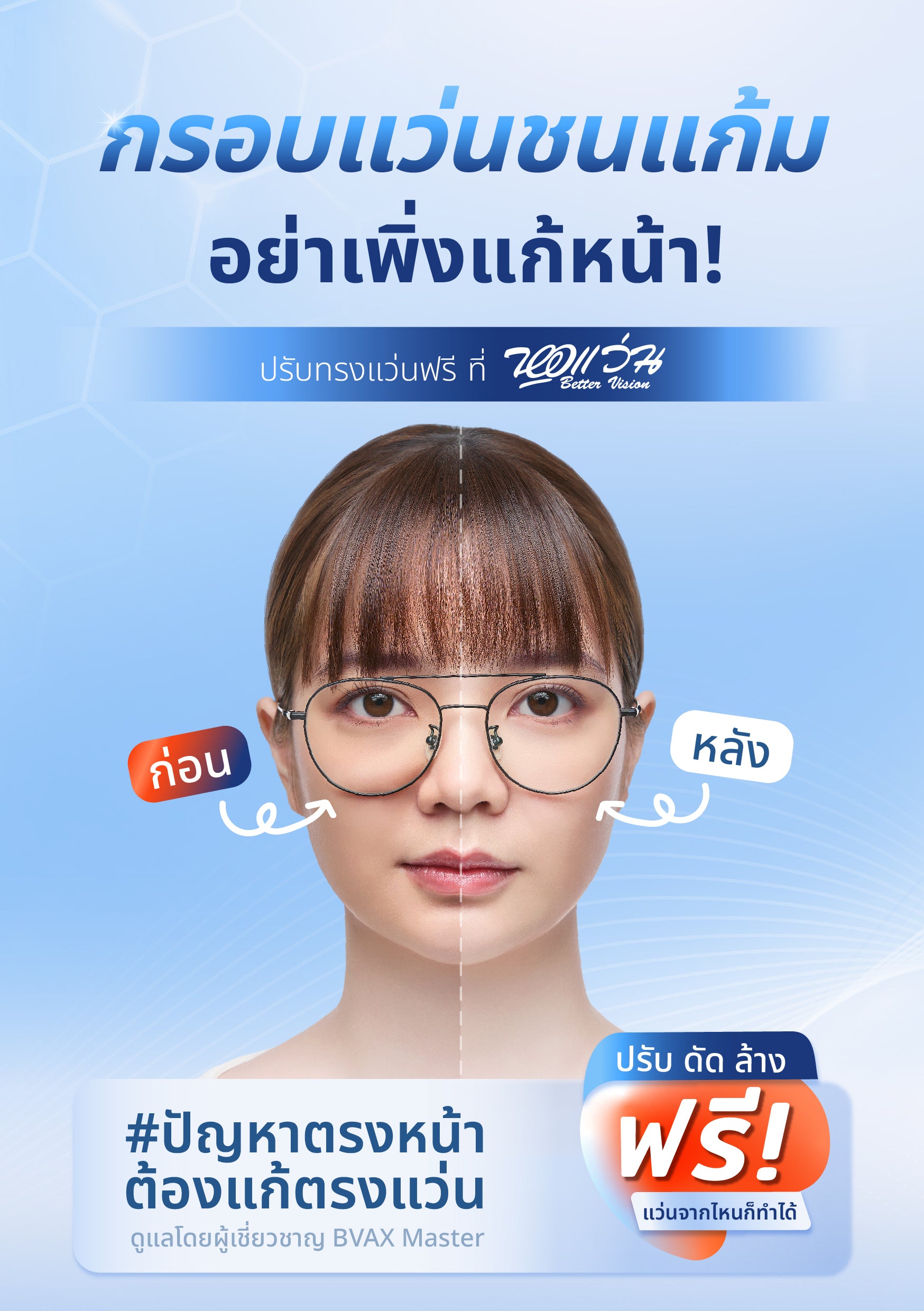 ลักษณะของใบหน้าของทุกคนมีความเฉพาะตัว แว่นตาจึงต้องถูกเลือกและปรับ-ดัดให้พอดี ผู้เชี่ยวชาญของ หอแว่น Better Vision จะช่วยวิเคราะห์รูปหน้า จุดกดทับ และลักษณะการใช้งาน เพื่อปรับ-ดัดแว่นให้เข้ากับสรีระของคุณอย่างแม่นยำ ใส่สบายขึ้น ทรงพอดีขึ้น และใช้งานได้อย่างมั่นใจในทุกวัน
