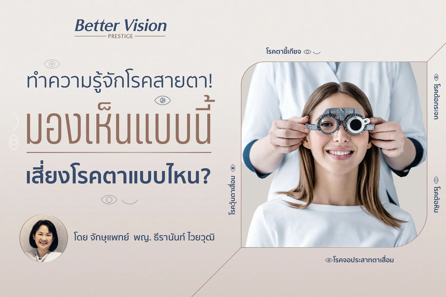 เพราะสุขภาพดวงตาคือสิ่งสำคัญ Better Vision Prestige มีจักษุแพทย์คอยให้คำปรึกษาเกี่ยวกับปัญหาโรคตา และแนะนำการดูแลสุขภาพดวงตาอย่างใกล้ชิด โดยไม่มีค่าใช้จ่าย