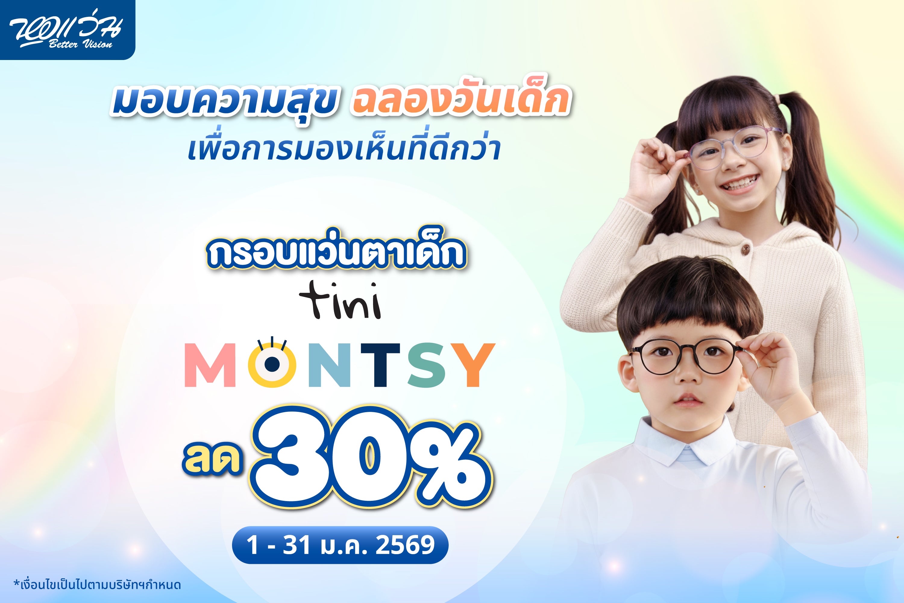 TINI MONTSY SALE! ลดกระหน่ำ 30% สำหรับกรอบแว่นตาเด็ก TINI MONTSY ทุกรุ่น! พร้อมโปรโมชันเลนส์ลดพิเศษ (สามารถสอบถามรายละเอียดได้ที่หน้าร้าน) ให้ลูกรักได้กรอบแว่นดีไซน์สวย ในราคาสบายกระเป๋า ตั้งแต่วันที่ 1-31 มกราคม 2569