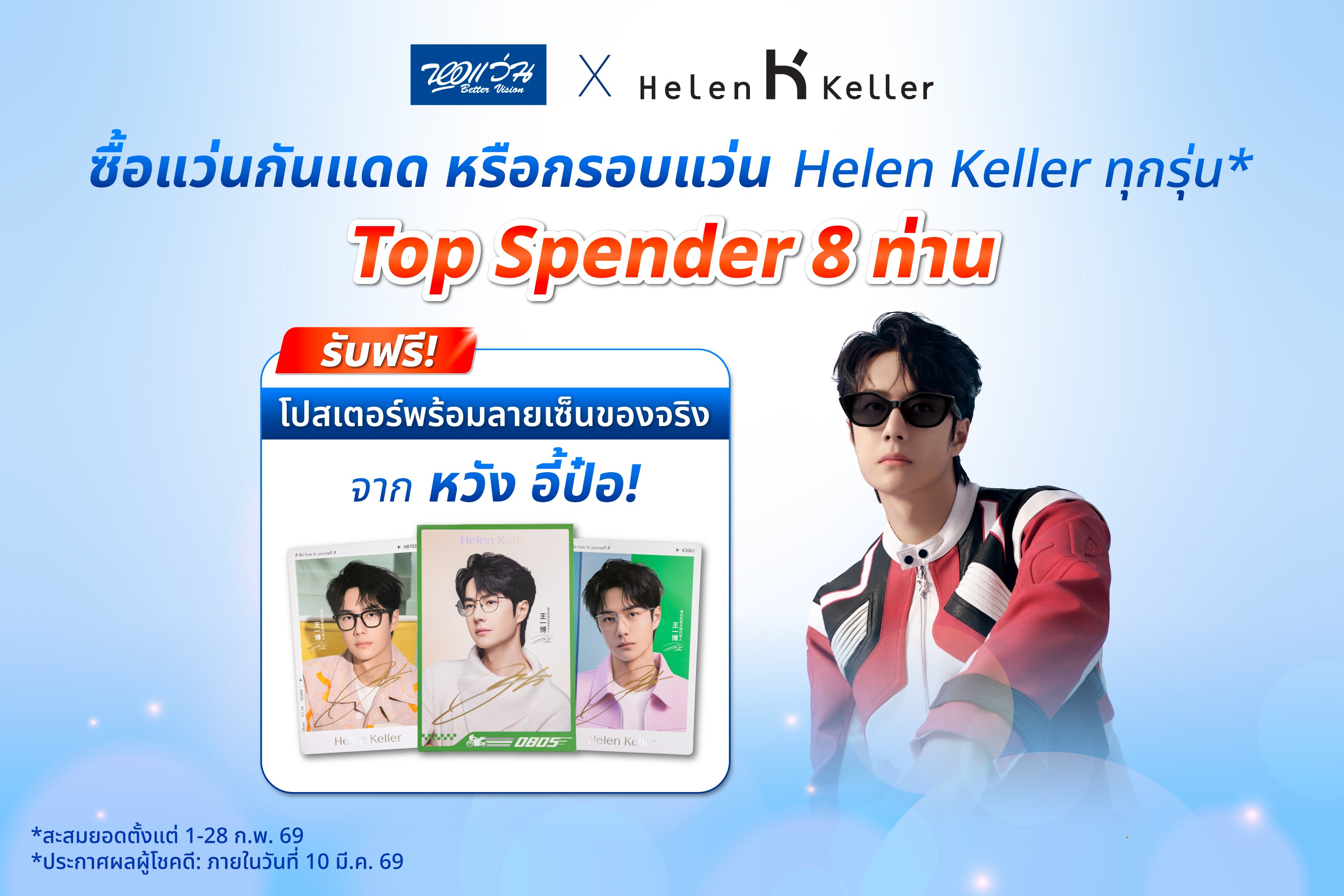 สะสมยอดซื้อแว่นตา Helen Keller ลุ้นรับฟรี โปสเตอร์พร้อมลายเซ็น หวัง อี้ป๋อ