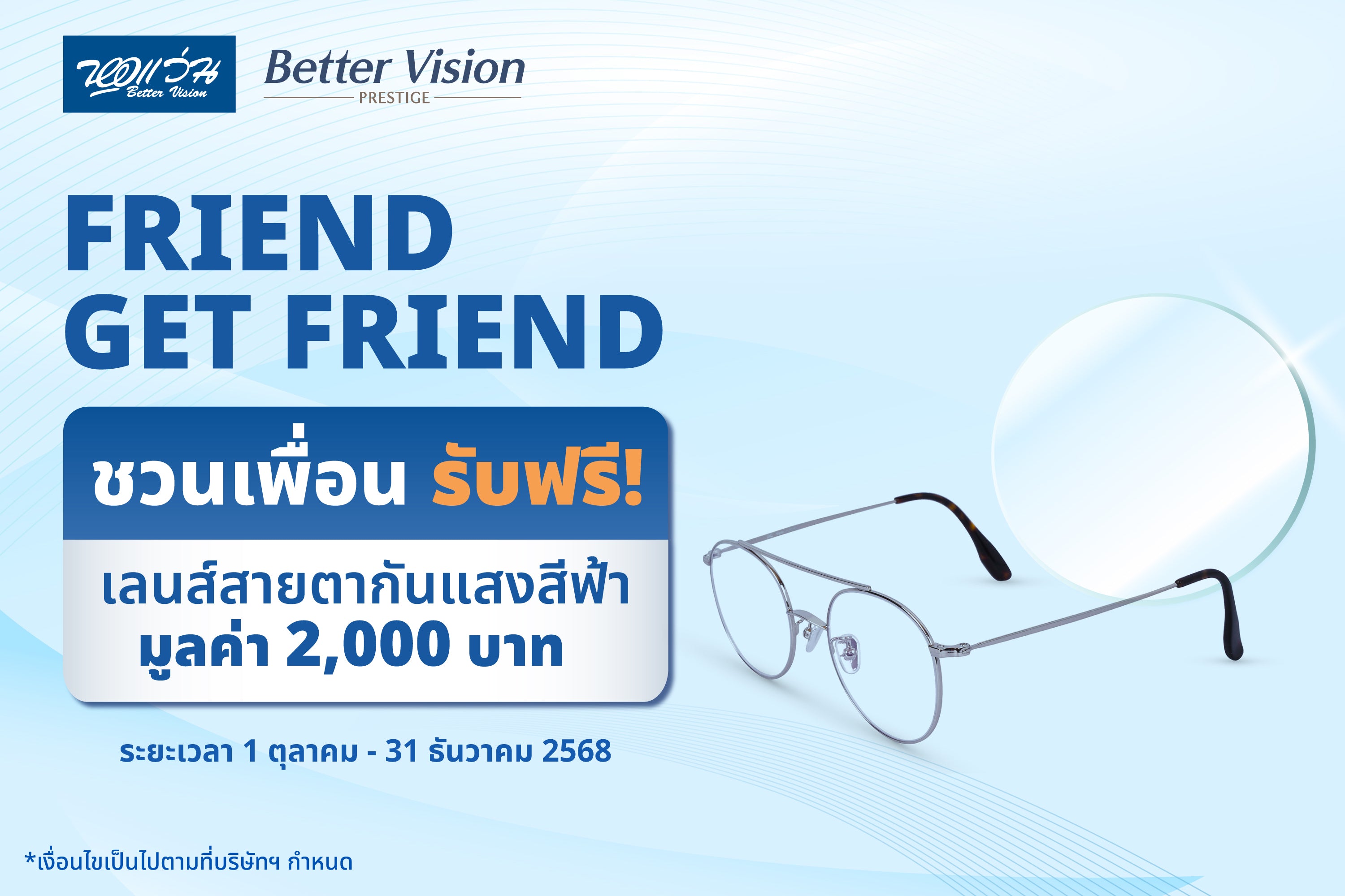 - รับฟรี! เลนส์สายตากันแสงสีฟ้าทั้งคนชวนและคนถูกชวนมูลค่า 2,000 บาท